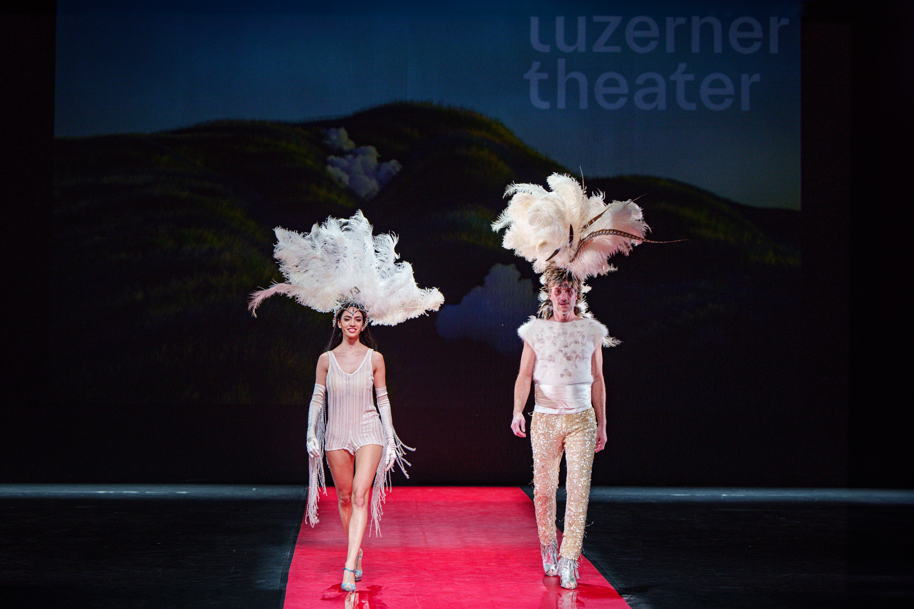 Es ist ein farbenfroher und schillernder Modestrauss, der gezeigt wird – jedes Defilee stimmungsvoll und expressiv begleitet von den jungen Talenten der Musical Factory, einer örtlichen Lehrwerkstätte für die staatlich anerkannte Berufslehre Bühnentänzer/in EFZ. Zusätzlich überrascht Ausbildnerin Corinne Küttel mit animierten Avataren, einer digitalen Möglichkeit der Planung und Präsentation, die noch nicht vollständig im Alltag der Lernenden angekommen ist. Selbstverständlich sind auch die neuesten Kollektionen von LU Couture zu bewundern, oft in Kombination mit den eleganten Modellen der Fashion-Partner. Die in feinster Handwerkskunst hergestellten Roben zeichnen sich durch zeitlose Qualität und das gewisse Etwas aus, bleiben dabei aber dennoch alltagstauglich. Ebenfalls überzeugend sind die sorgfältig kreierten Wohlfühl-Outfits der Yoga Boutique. Mit ausgesuchten Stücken aus der Sammlung Swiss Textile Collection aufersteht schliesslich der Glanz verschiedener Haute Couture-Ensembles aus den 1940er bis 1990er Jahren – eine handverlesene Zusammenstellung von Rosmarie Amacher. Ausserdem werden besondere Trouvaillen aus dem Theater-Fundus vorgestellt, die von poetischer Verspieltheit bis zu schriller Extravaganz fast alles aus dem grenzenlosen Reich der Fantasie zum Ausdruck bringen. Im Interview mit Theater-Intendantin Ina Karr erfährt das interessierte Publikum unter anderem, dass die stark beanspruchten Kostüme zur Geruchsneutralisierung noch heute mit Vodka gereinigt werden – die Gewandmeisterin schwört darauf! Das absolute Highlight des Abends aber ist das Defilee der Auszubildenden, die ihre einzigartigen Couture-Kreationen selbstbewusst präsentieren und in schlichtem Schwarz neben ihren Models über den roten Teppich laufen. Sie lassen keinen Zweifel daran, dass ihr Metier dank ihres fundierten Könnens, ihres begeisterten Engagements und ihrer einfallsreichen Gestaltungslust weit über die Verkleidungskiste hinaus zukunftsfähig ist.